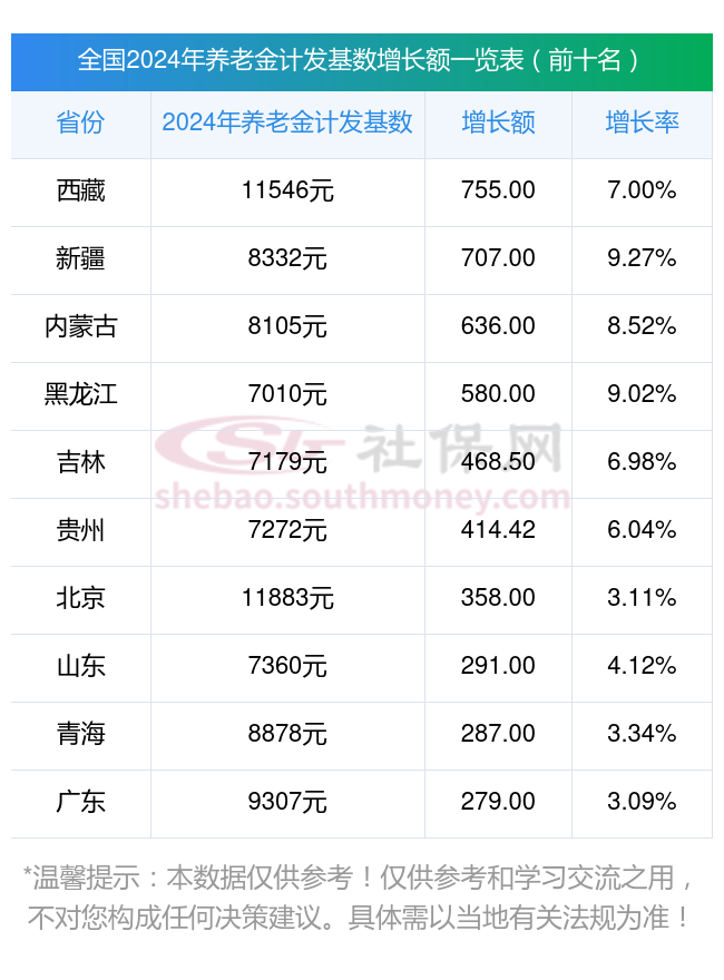 再看看,最新全国各地养老金计发基数排名前十的城市: