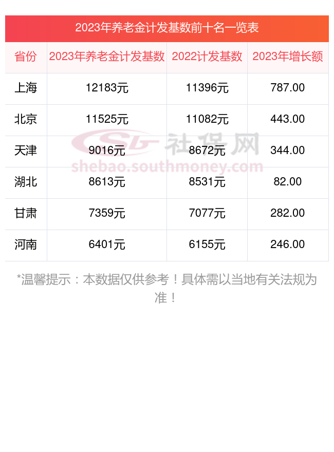 全国2023年养老金计发基数排名前十的城市,看看有你的城市吗?在这里简单分享一下: