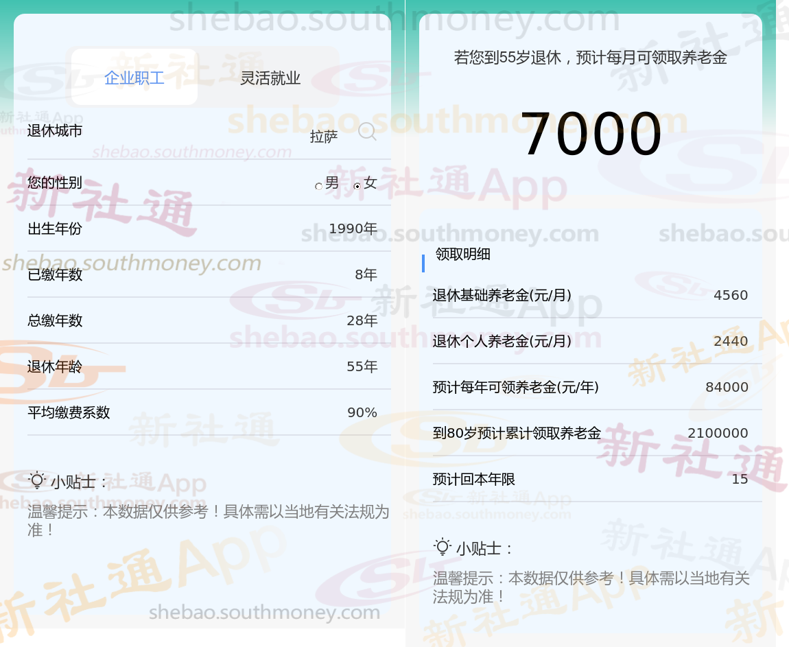通过新社通APP-养老金计算所得:退休城市、出生年份、退休年龄、缴费系数都相同的情况下,社保缴费年限累计31年时,计算如下: