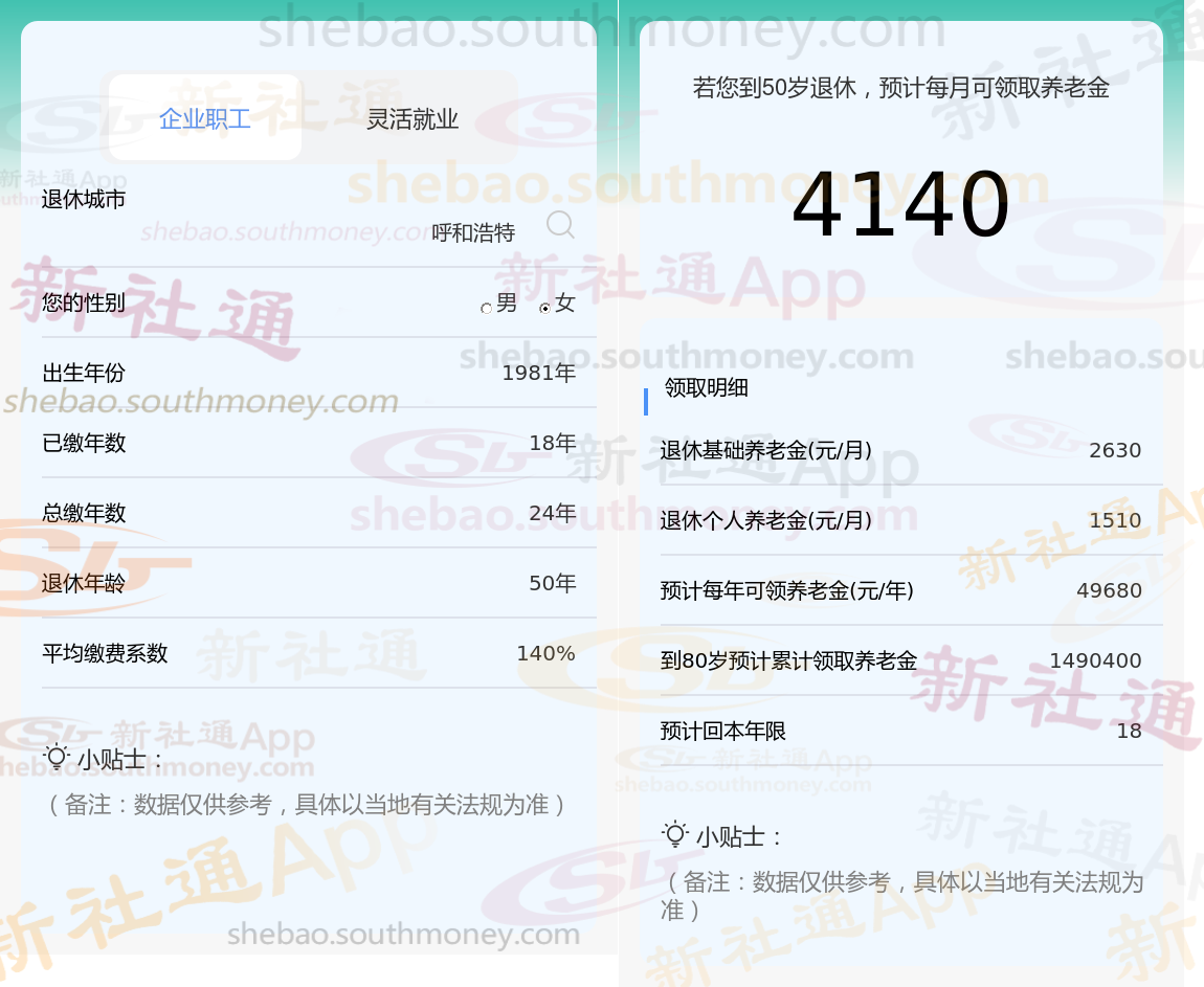 通过新社通APP-养老金计算所得:退休城市、出生年份、退休年龄、缴费系数都相同的情况下,社保缴费年限累计24年时,计算如下: