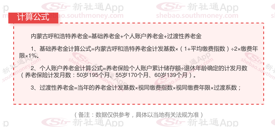 下面社保小编一起来看下,以内蒙古呼和浩特为例(不考虑过渡养老金):