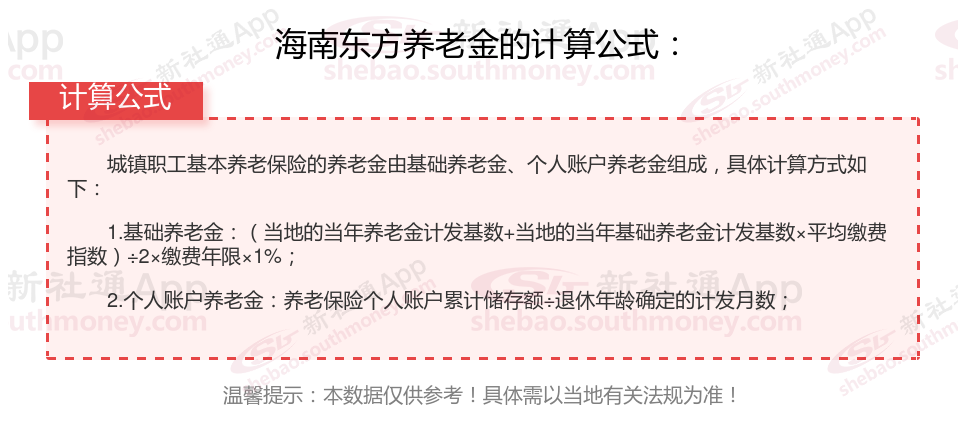 据新社通app了解,海南东方2025年养老金计算公式是什么?