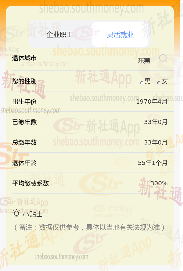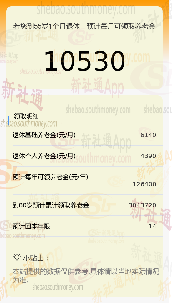 新社通app养老金计算器计算所得: