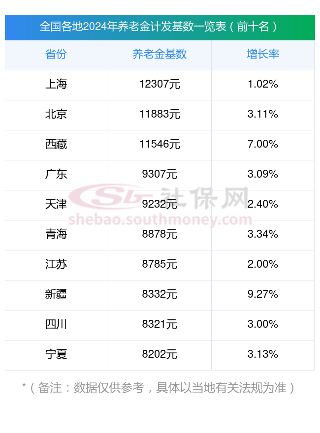 下面是已经公布2024年养老金计发基数的前10省份的具体情况