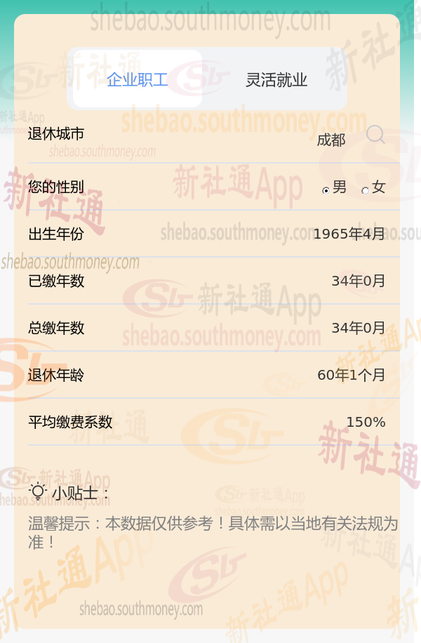 杨某是一位即将退休的工人,他在工厂里辛勤工作了数十年,为社保缴纳了34年的费用。他一直以来都是按照150%的档位进行缴纳,希望退休后能有一份稳定的养老金来支撑生活。随着退休日期的临近,杨某开始关注自己的养老金数额。他听说养老金的计算涉及多个因素,包括缴费年限、缴费档位、当地平均工资以及个人账户累计金额等。但他并不清楚具体的计算方法,只知道自己的养老金大约是5900元。
