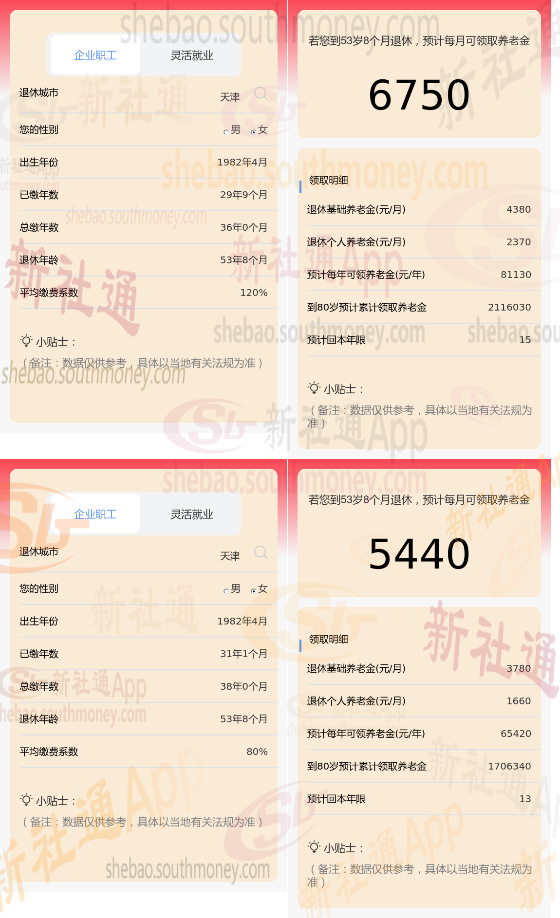 根据新社通app养老金计算器,轻松测算您的养老金!经过计算发现,张某与老魏的在养老金上的差异,主要是由于他们的缴费年限和缴费档位不同所导致的。具体来说,两者的养老金差额达到了1310元,即张某的6750元减去老魏的5440元。