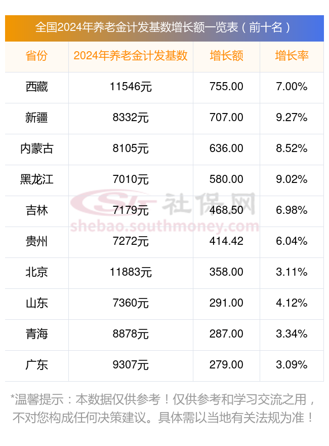 查阅新社通app显示,下面是已经公布2024年养老金计发基数的前10省份的具体情况