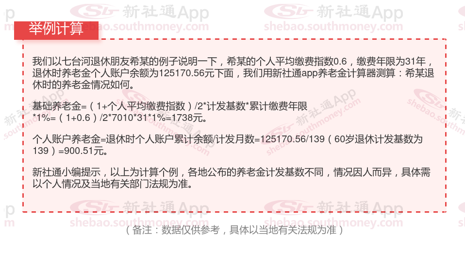 七台河2025年退休能领多少钱的计算方法举例如下:
