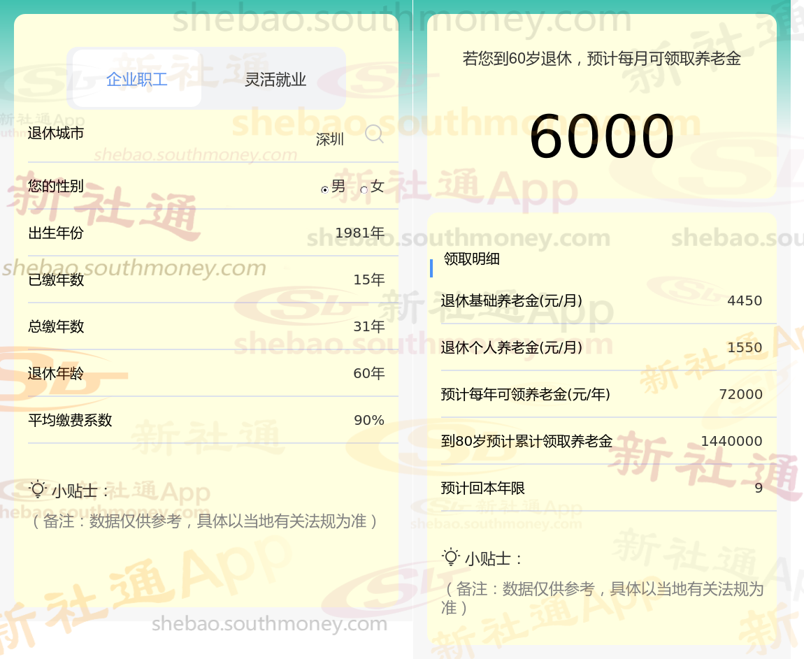 查阅新社通app显示,深圳养老金=基础养老金+个人账户养老金
