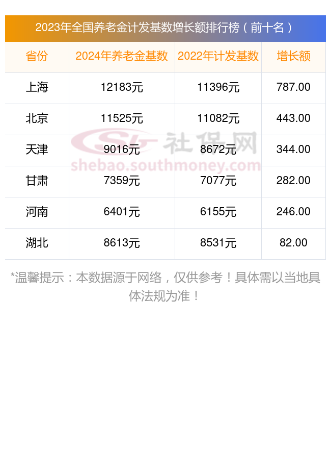 再来看看,全国各城市最新养老金计发基数公布前十名一览
