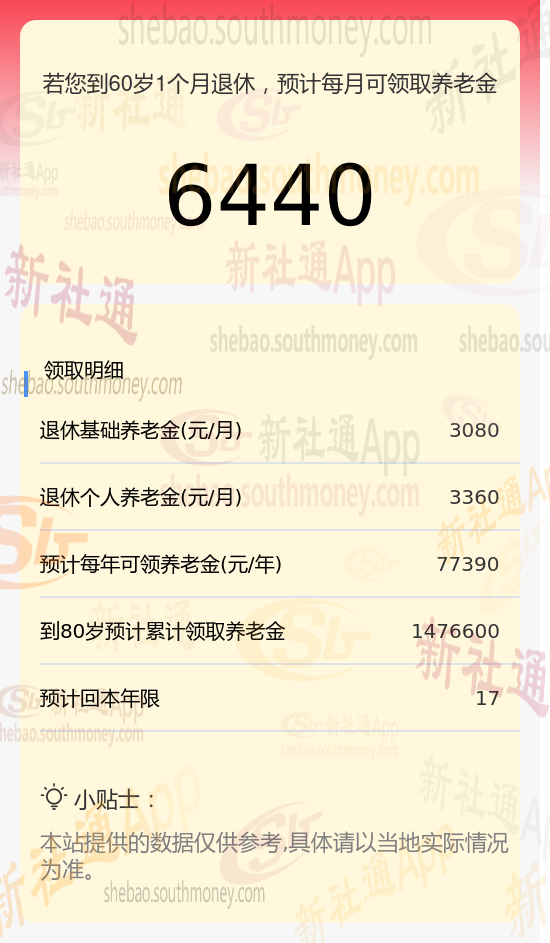 下面一起来分享个例子:网友杨某,社保缴纳22年要退休了,按300%档位缴纳,估算每月领取大约会比6300元多。