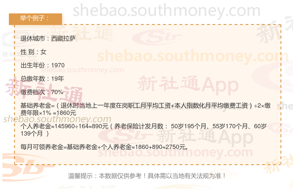 个人档案:女性,1970年出生,西藏拉萨退休职工,社保缴费19载,档次70%。