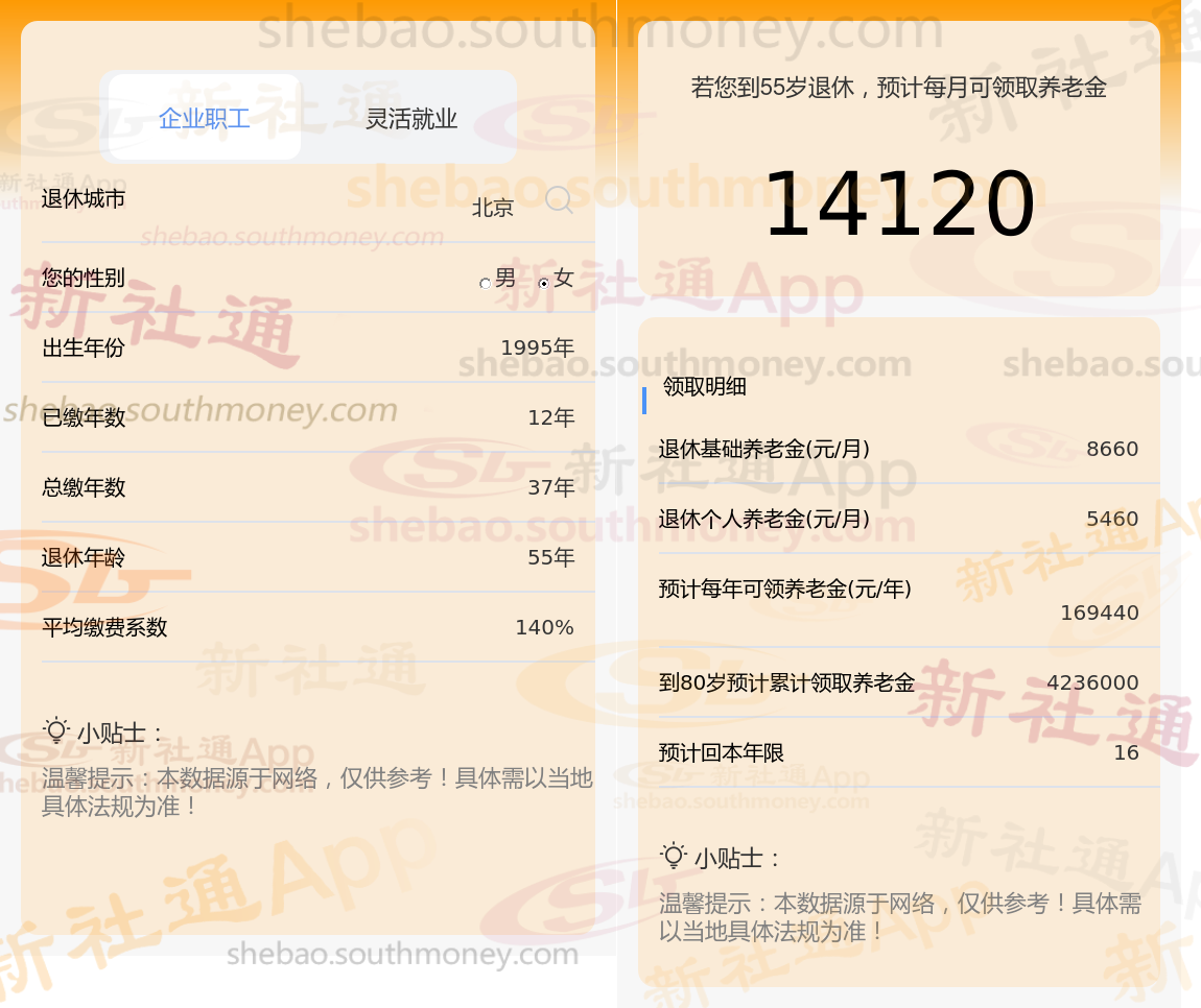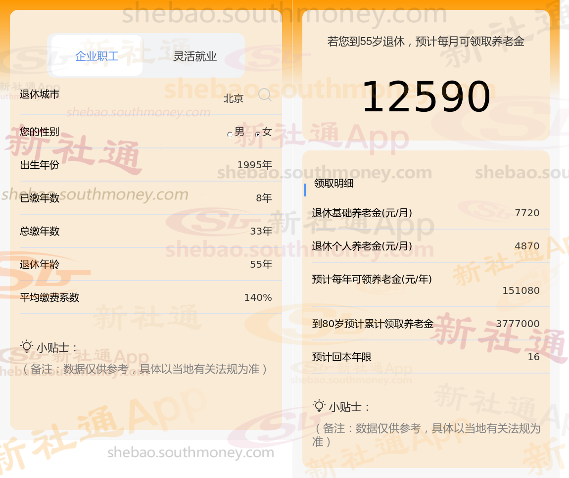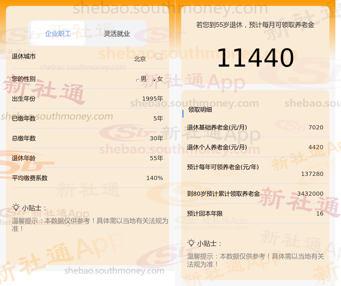 》点击新社通app养老金计算器,快算算你的养老金够不够花!