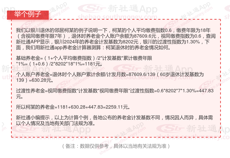 过渡性养老金(适用于特定人群):具体计算方法因地区而异,需参照当地法规执行。