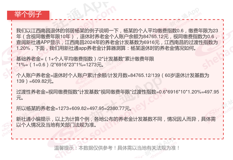 退休人员注意,江西南昌2025年养老金计算公式来了,快来看一下你能领多少钱吧!据新社通app获悉,养老金对于所有人来说都是非常重要的,对于年轻人来说,它是对晚年生活的提前安排,对于老年人来说它是重要的收入来源,也是退休后安享晚年的经济支柱。