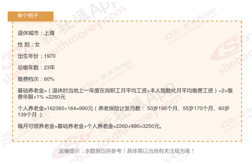 每月总共能领多少:把上面两个数加在一起,就是每个月你能领到的养老金总数啦,大概是3250元(即2260元基础养老金+990元个人养老金)。