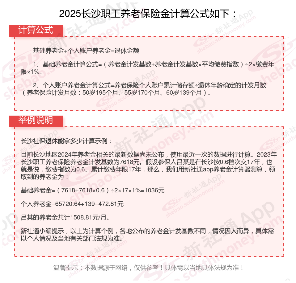 长沙退休工资养老金计算方法及公式2024年最新(举例说明)
