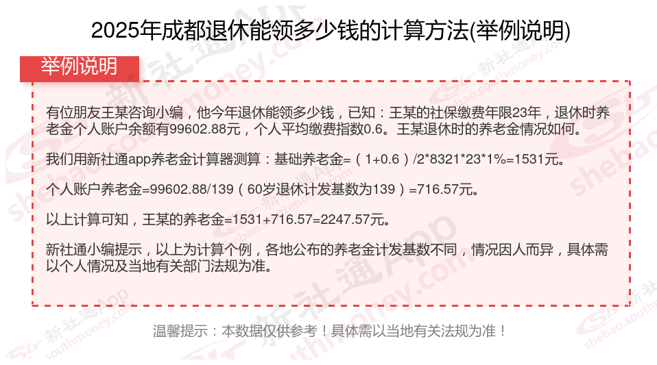 据新社通app获悉:成都2025年退休能领多少钱的计算方法如下: