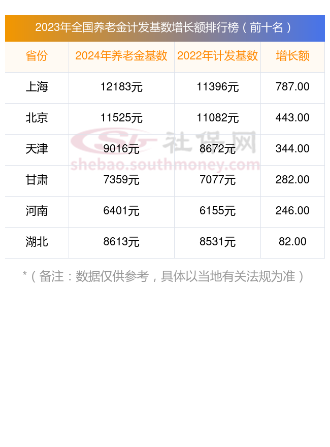 再看看,最新全国各地养老金计发基数排名前几的城市: