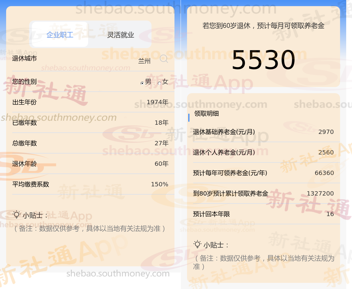 通过新社通APP-养老金计算所得:退休城市、出生年份、退休年龄、缴费系数都相同的情况下,社保缴费年限累计27年时,计算如下: