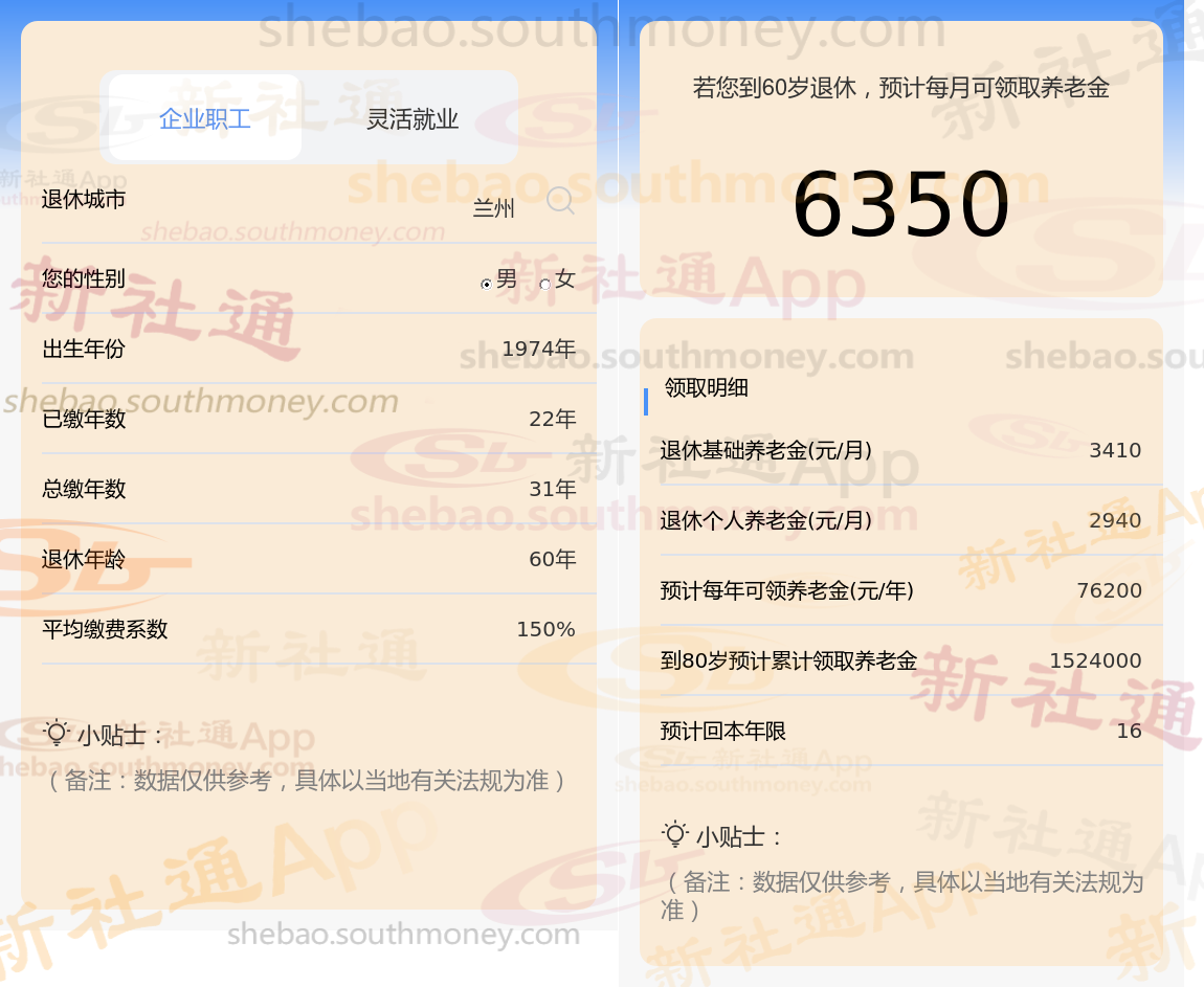 通过新社通APP-养老金计算所得:退休城市、出生年份、退休年龄、缴费系数都相同的情况下,社保缴费年限累计31年时,计算如下: