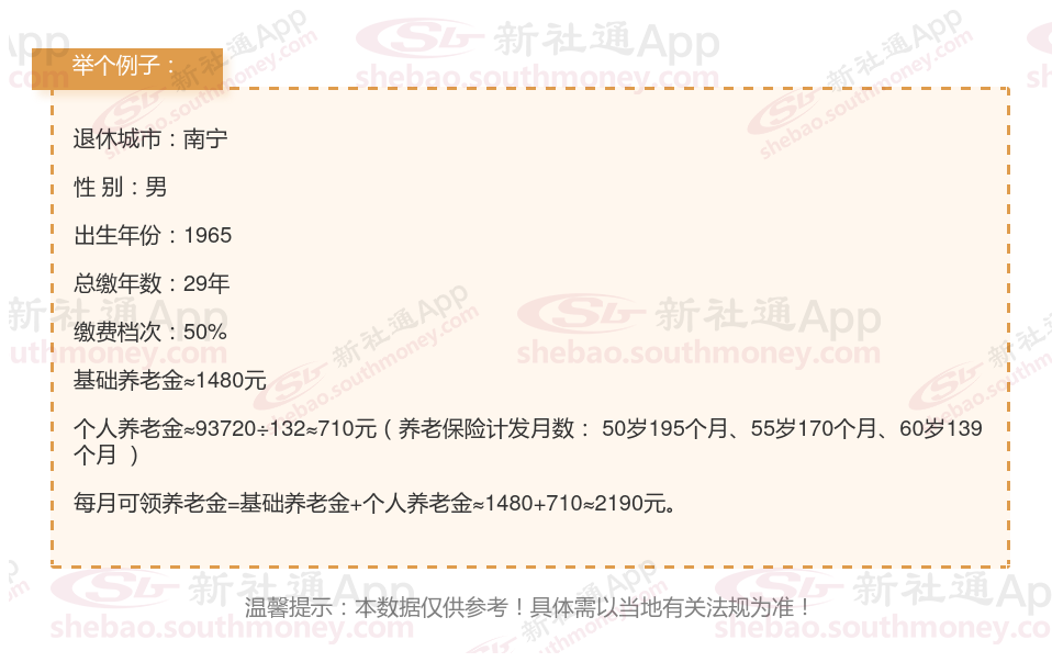 每月可领养老金=基础养老金+个人养老金≈1480+710≈2190元。