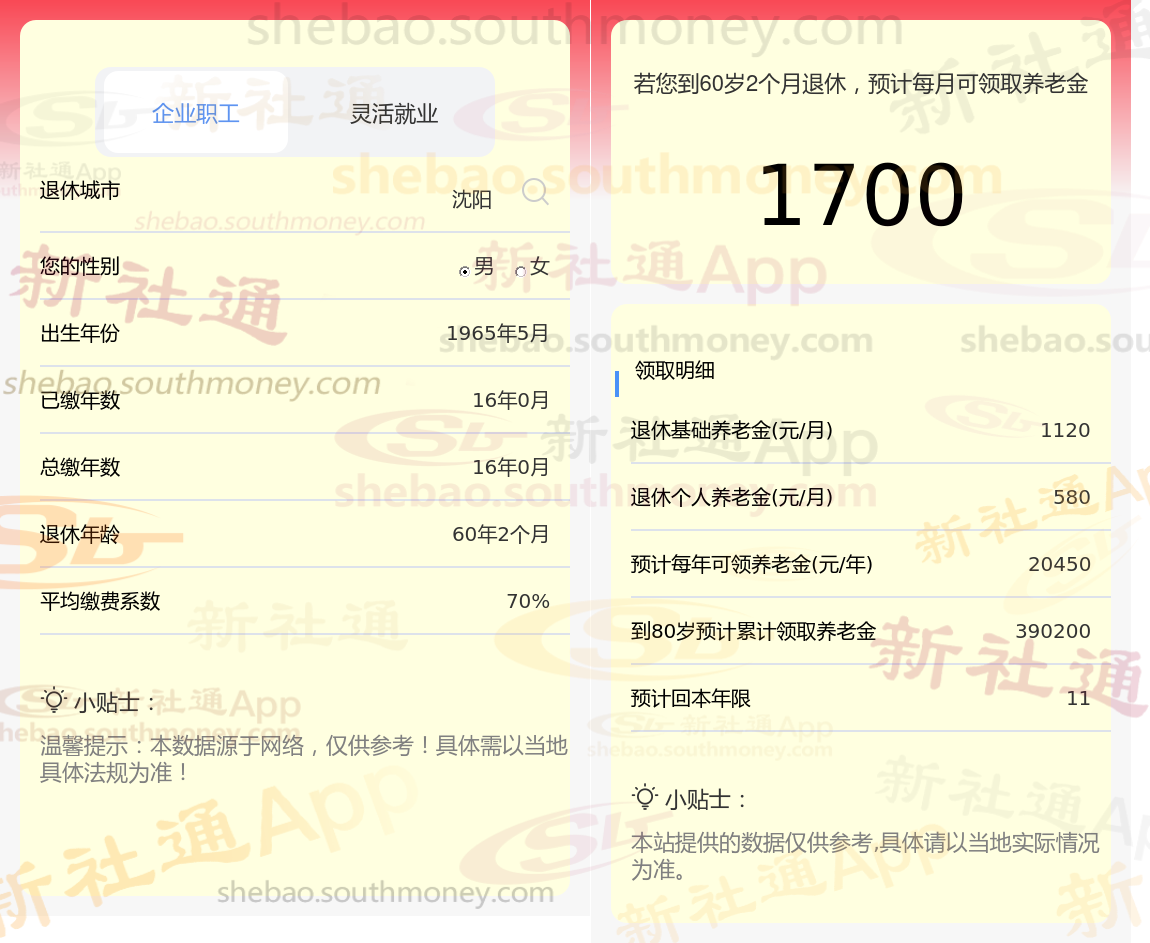 新社通app养老金计算器计算所得: