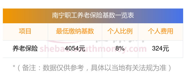 据新社通app显示,南宁企业职工养老保险的缴费基数为:4053.6元。