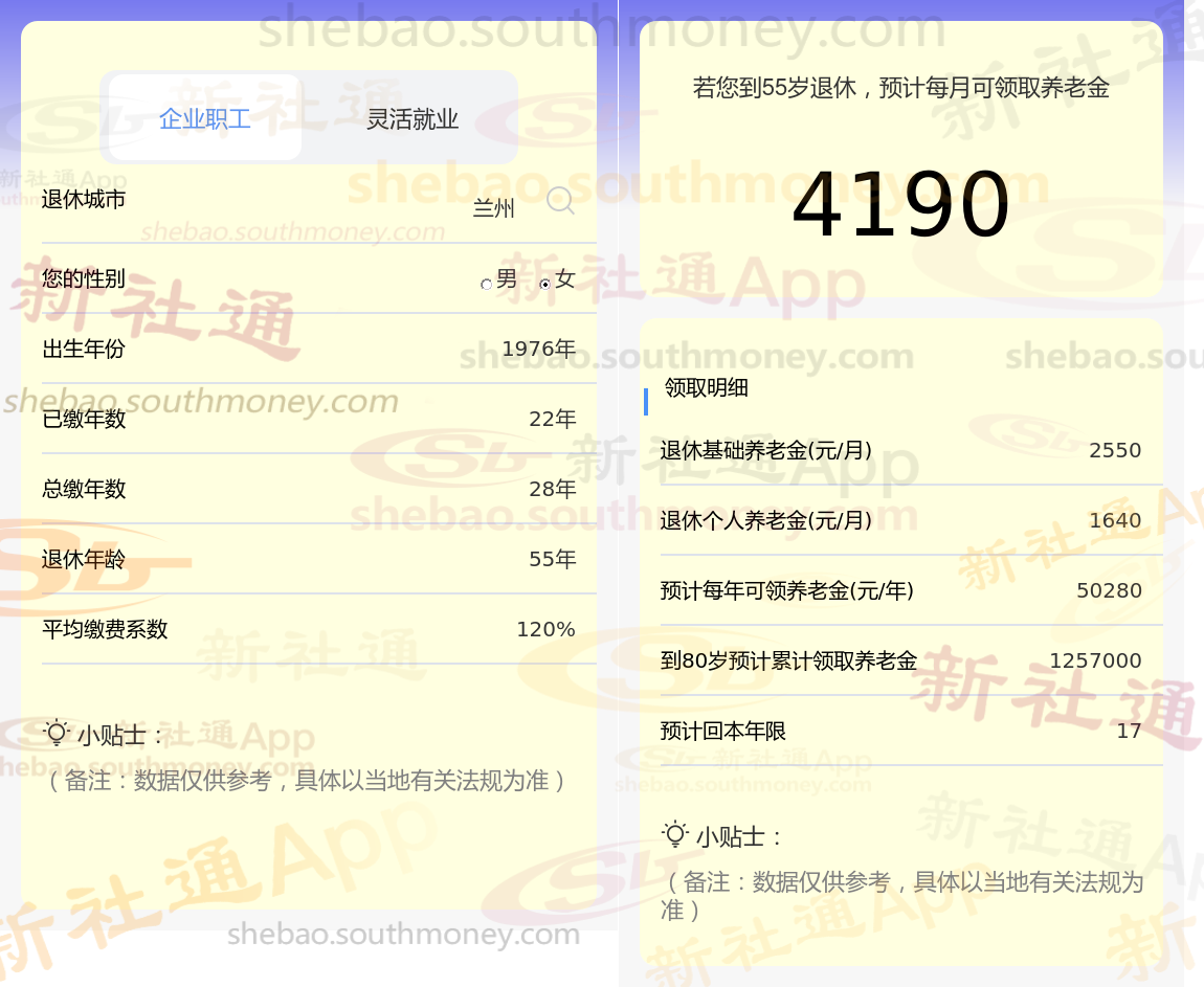 通过新社通APP-养老金计算所得:退休城市、出生年份、退休年龄、缴费系数都相同的情况下,社保缴费年限累计22年时,计算如下: