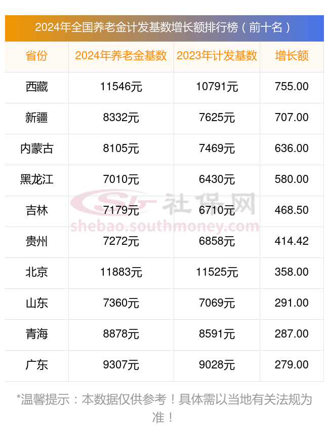 再看看,最新全国各地养老金计发基数排名前几的城市:
