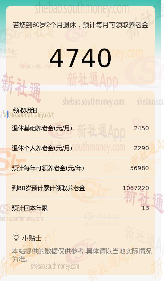 通过这个新社通app养老金计算器,您可以根据自己的实际情况,如缴费年数、缴费档位等,来估算自己在退休时可能获得的养老金数额