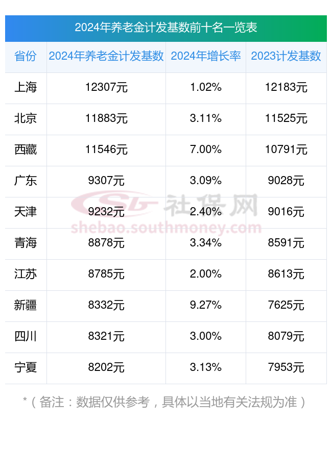 2024年新疆养老金计发基数增长率达到9.27%,位列第一位;