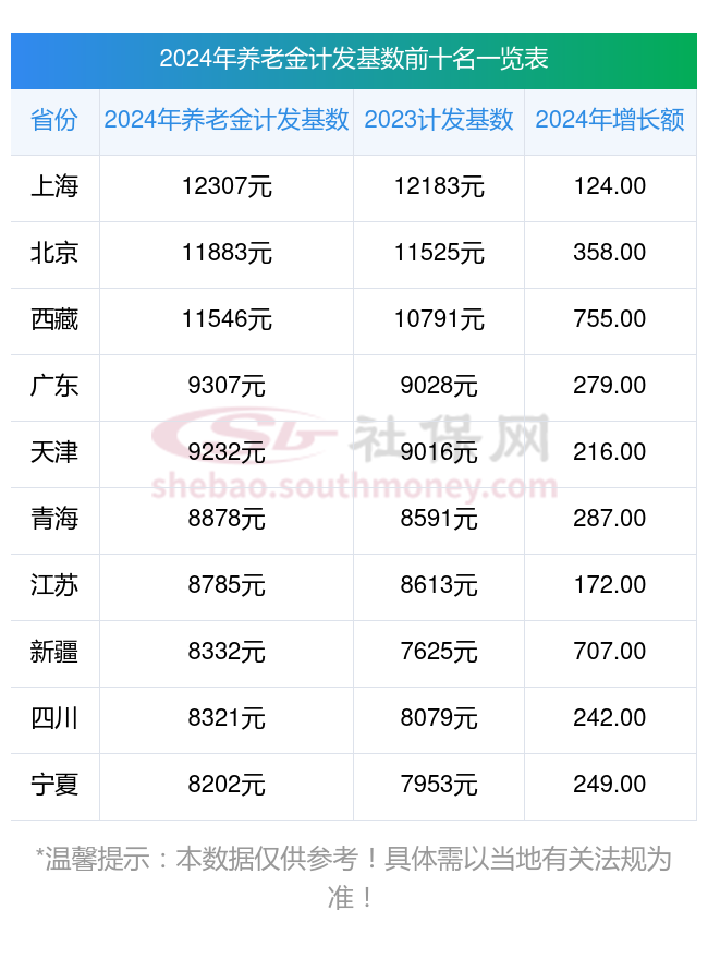 二、全国2023年养老金计发基数的前10省份的具体情况
