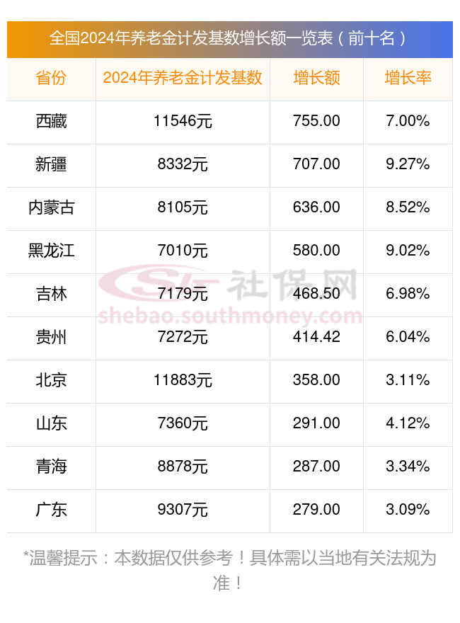 再看看,最新全国各地养老金计发基数排名前几的城市: