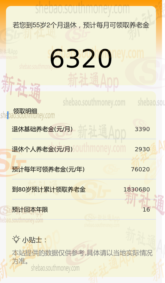 新社通app养老金计算器算出养老工资一个月多少钱?