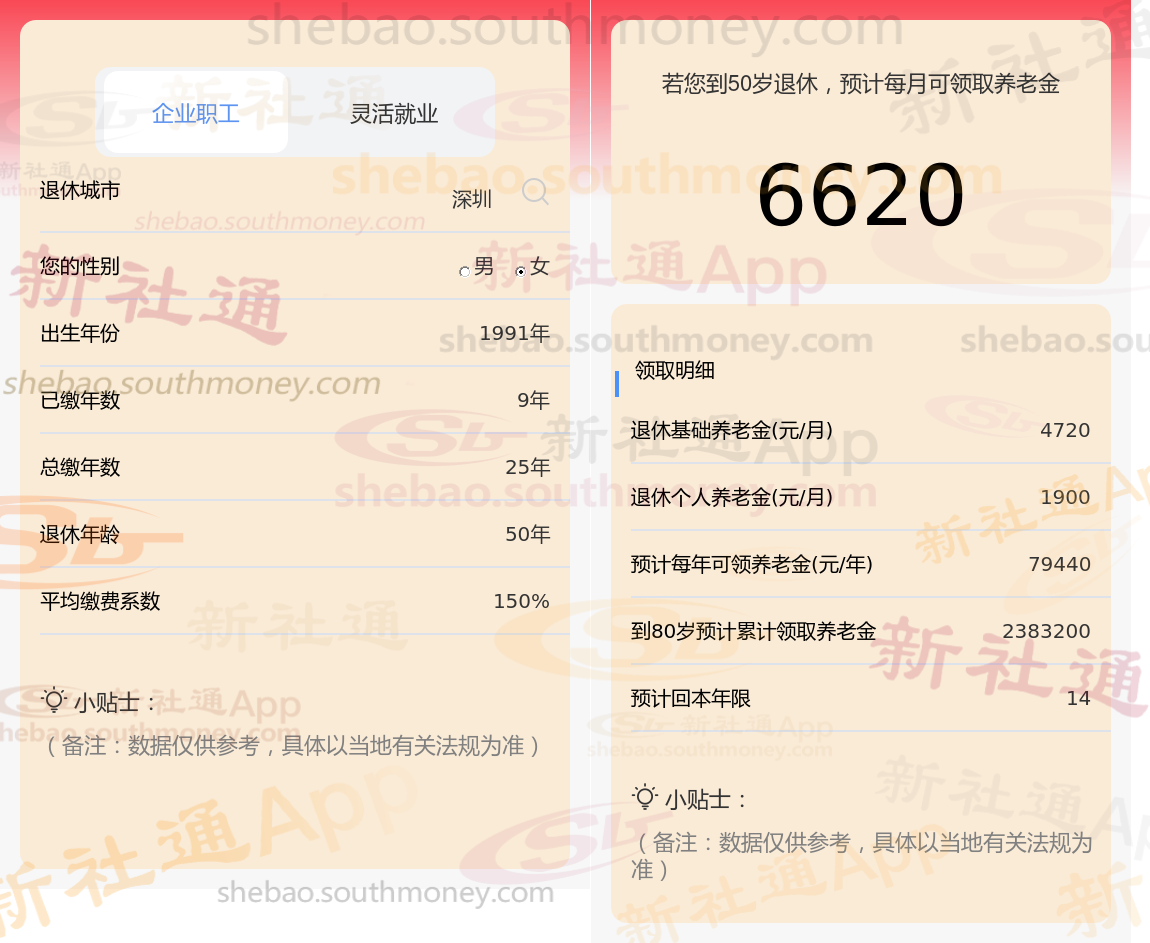 通过新社通APP-养老金计算所得:退休城市、出生年份、退休年龄、缴费系数都相同的情况下,社保缴费年限累计25年时,计算如下: