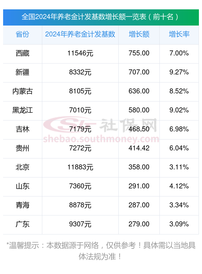 查阅新社通app显示,下面是已经公布2024年养老金计发基数的前10省份的具体情况