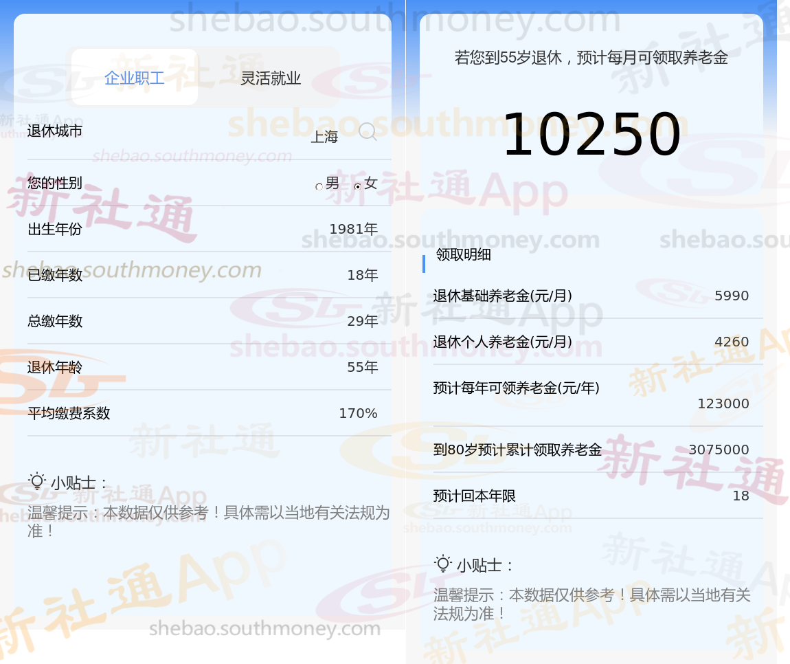 通过新社通APP-养老金计算所得:退休城市、出生年份、退休年龄、缴费系数都相同的情况下,社保缴费年限累计29年时,计算如下: