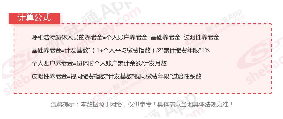 下面新社小编一起来看下,以呼和浩特为例(不考虑过渡养老金):