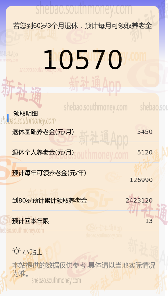 林某,辽宁沈阳人,1965年出生,是一名拥有33载社保缴费年限的退休男性,缴费档次稳定在300%。岁月流转,他终于迎来了自己的退休时光。借助新社通app养老金在线计算器计算所得: