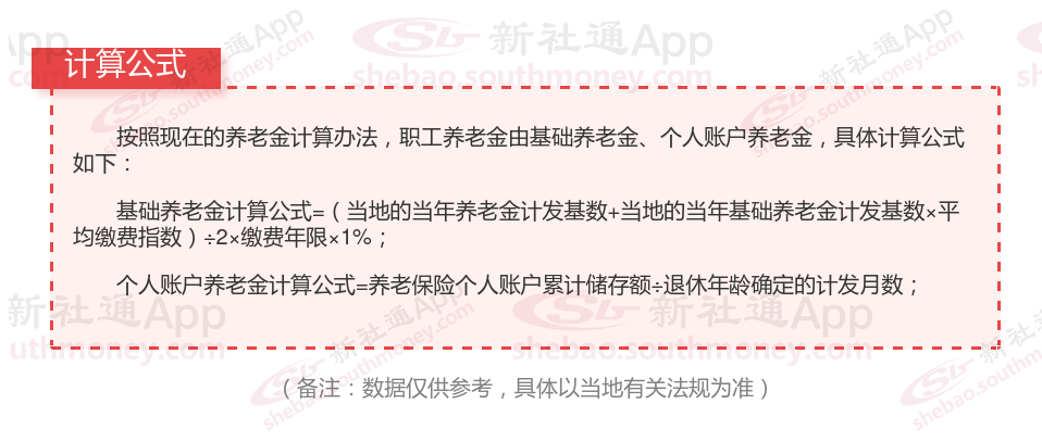 个人账户养老金计算:个人账户养老金的计算方法是根据您个人账户中的储蓄金额除以缴费月数,缴费月数根据您的退休年龄确定。每月大约1180元。