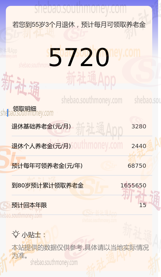 每月可领养老金合计:3280+2440≈5720元。