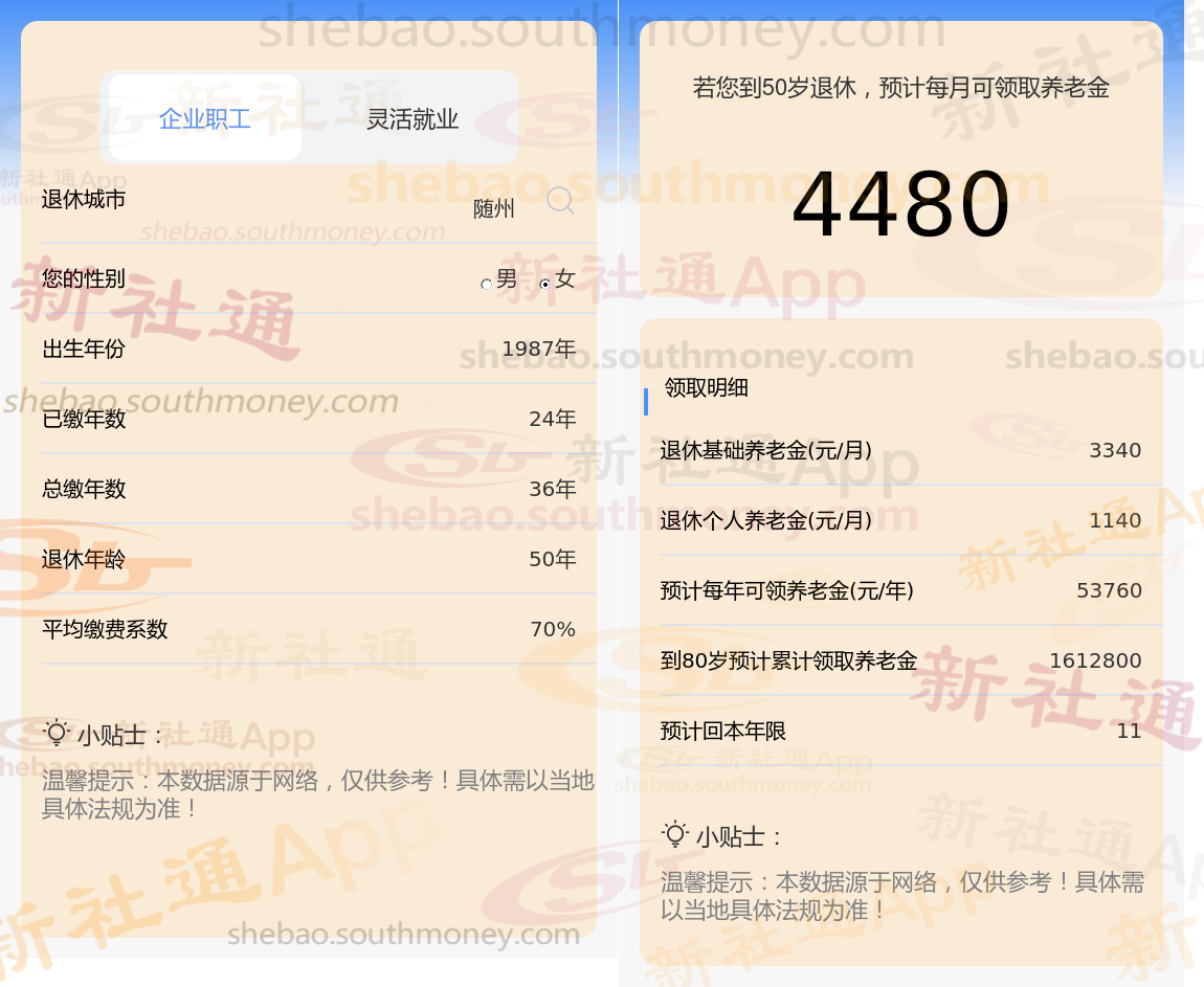 》点击新社通app养老金计算器,快算算您的养老金够不够花!