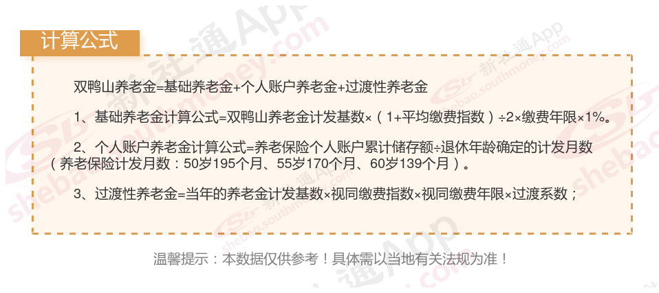 下面社保网app一起来看下,以双鸭山为例(不考虑过渡养老金):
