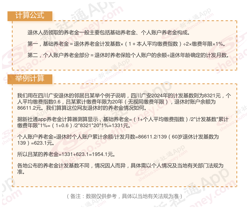 四川广安社保退休工资计算方法及公式2024年最新(计算器)