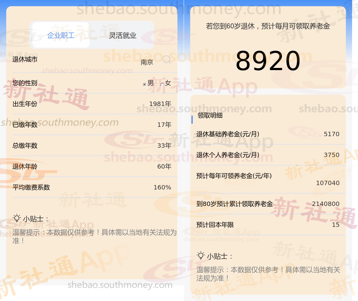 通过新社通APP-养老金计算所得:退休城市、出生年份、退休年龄、缴费系数都相同的情况下,社保缴费年限累计33年时,计算如下: