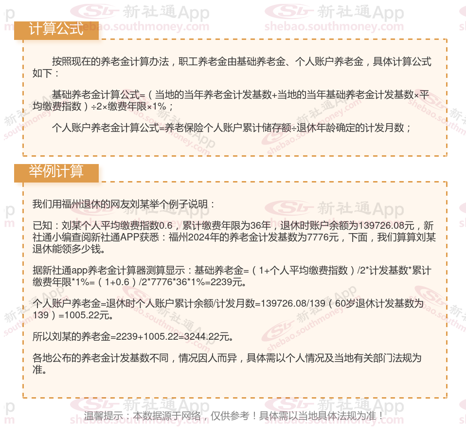 福州退休工资养老金计算方法及公式2024年最新(举例说明)