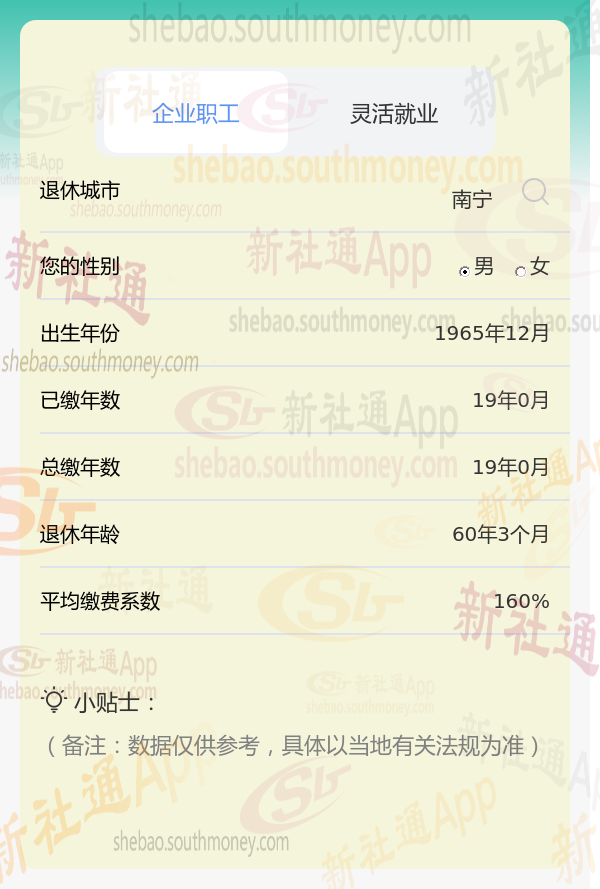 新社通app养老金计算器计算所得:
